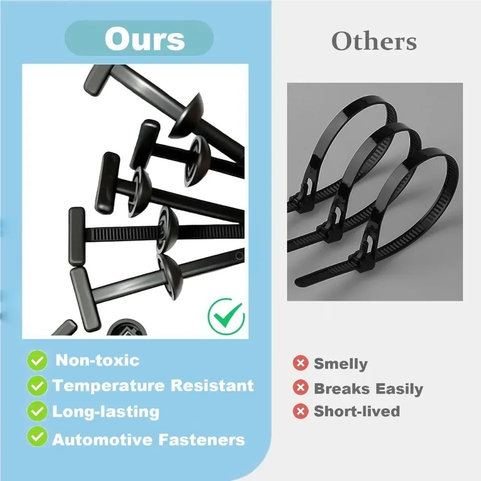 Durable Nylon Material: Made from high-strength nylon, these cable ties can withstand rain, heat, and daily wear and tear. Perfect for long-term outdoor or automotive use, especially when durability is required.