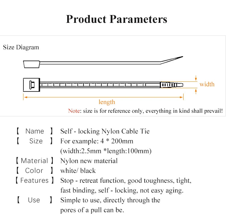 100 PCS Self-locking Plastic Nylon Tie Black Fastening Strap Cable-Tie-Set Cable Zip Tie Fastening Ring Zip Wraps Strap Tie