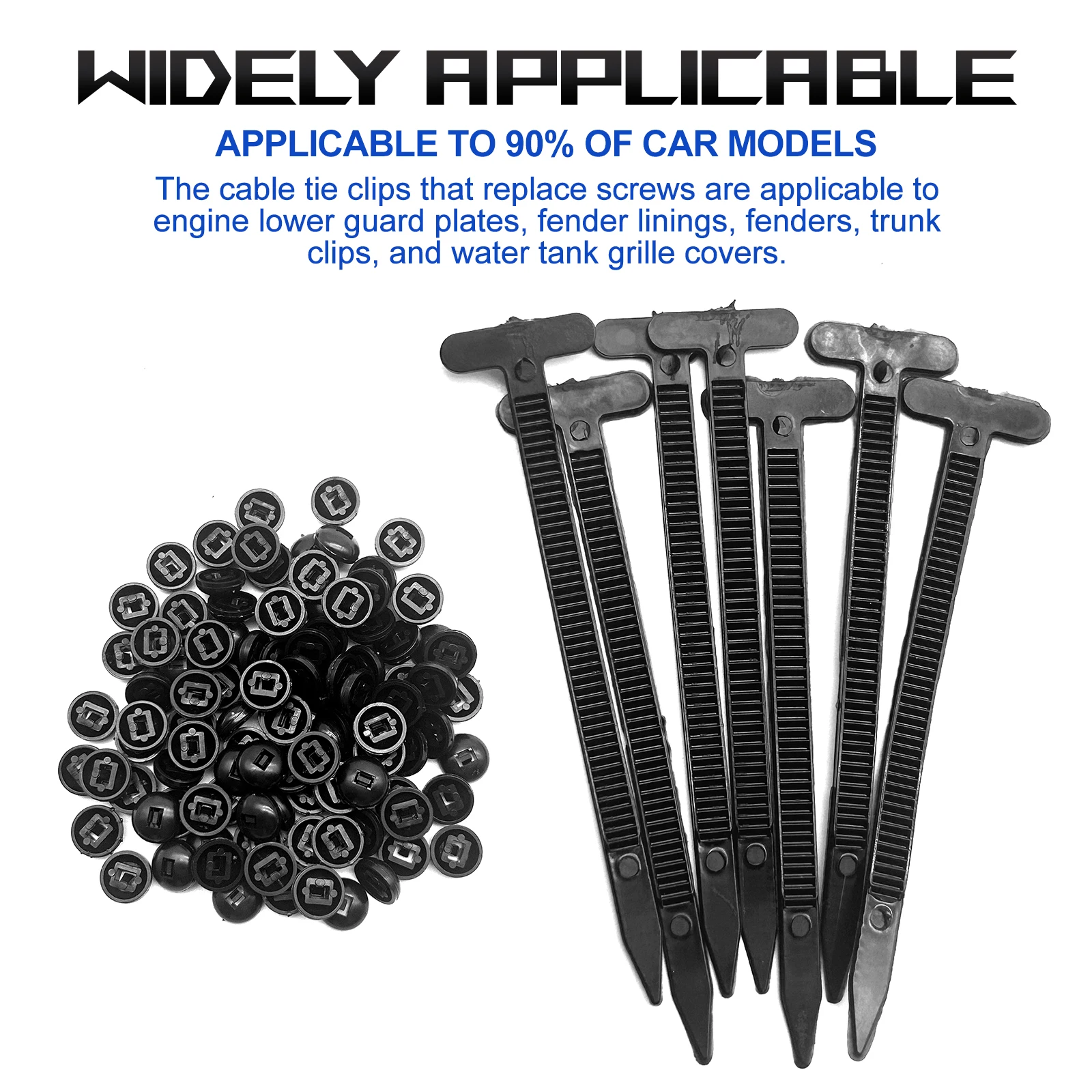 【Nylon Universal Cable Tie Buckle】Designed to replace screws and clips in over 90% of car models, these cable tie buckles are ideal for securing fenders, trunk linings, engine guards, and underbody panels.