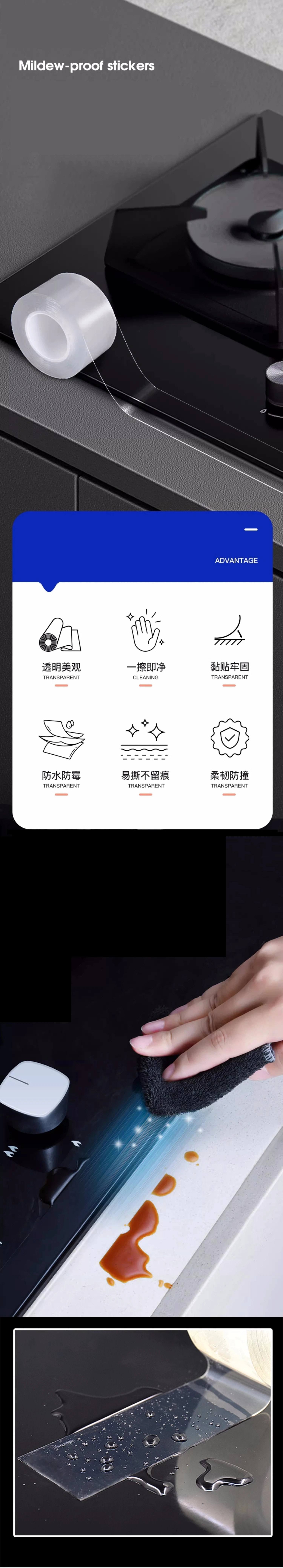 Bathroom Kitchen Toilet Strong Adhesion Transparent Waterproof Tape Mildew Proof Adhesive Tape