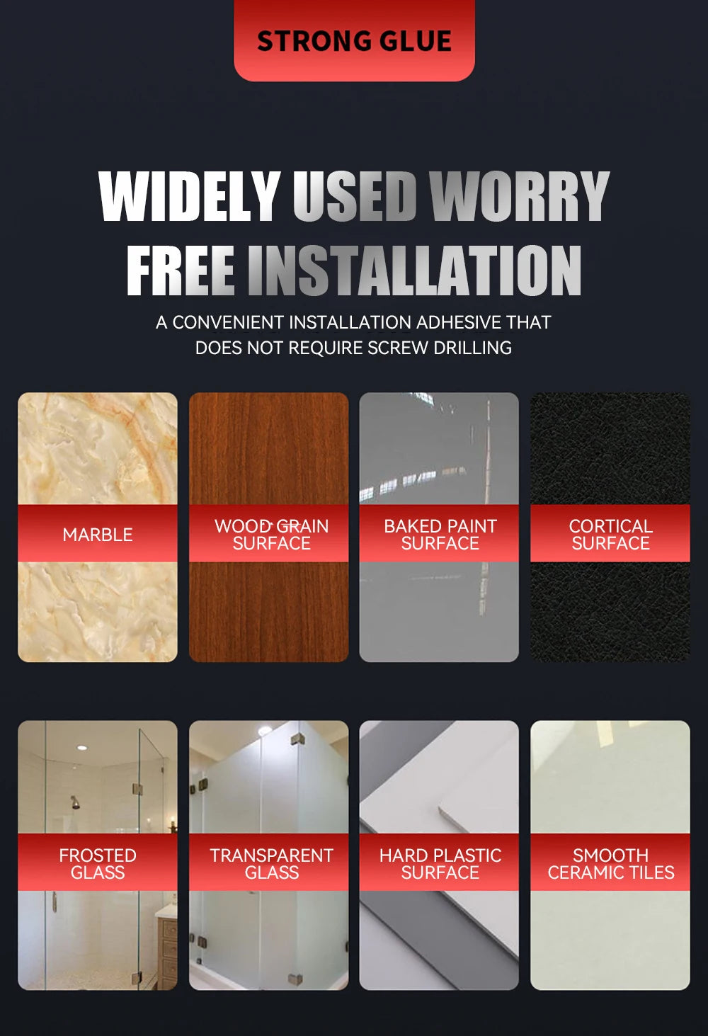 ✅Specialized acrylic adhesive fully cures in 24 hours, creating a moisture-tight seal for bathroom mirrors, boat fixtures, or outdoor signage. Survives rain and humidity cycles.🎯 Zero-Tool Hassle