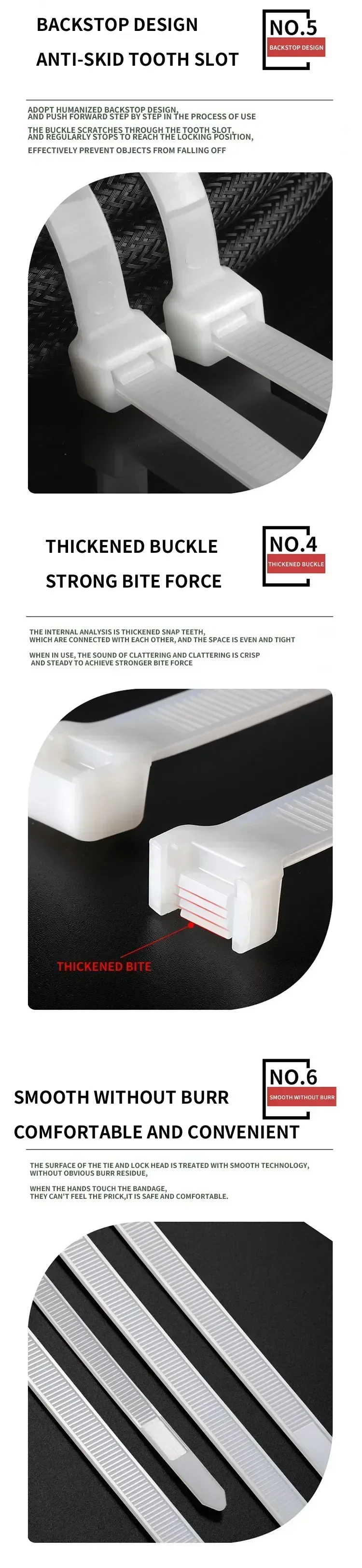 Heavy Duty Nylon Cable Ties 5x200/300/500mm, Self-Locking Flame Retardant Zip Ties for Electrical Panel Industrial Use