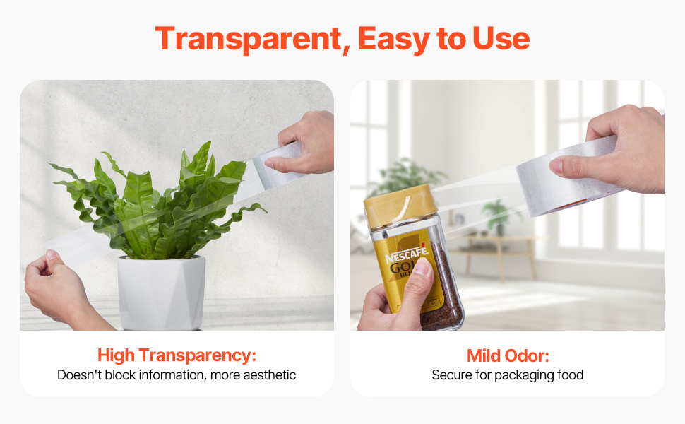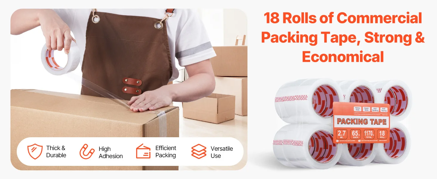 Easy to Use: Our heavy duty clear packing tape is compatible with all standard dispensers and tape guns, or can be torn by hand, making packing quick and efficient. The high transparency ensures the tape won’t block important information, keeping your boxes looking neat.
