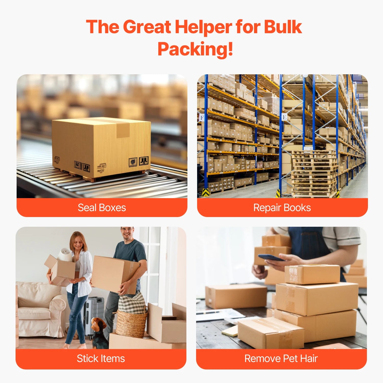 Easy to Use: Our heavy duty clear packing tape is compatible with all standard dispensers and tape guns, or can be torn by hand, making packing quick and efficient. The high transparency ensures the tape won’t block important information, keeping your boxes looking neat.