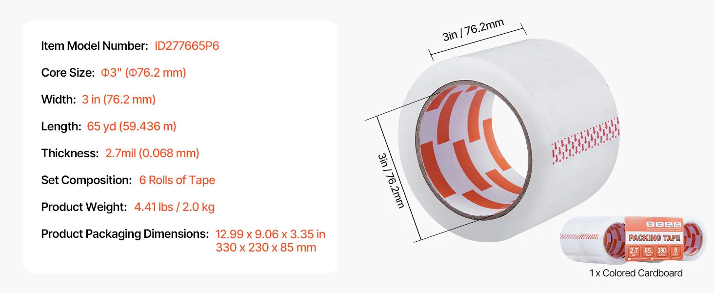 Affordable Combo: Our package tape set includes 6 rolls of 3-inch core tape, each 65yd / 59.436m long—5-10yd / 4.57-9.14m longer than standard rolls, providing longer usage and greater value.