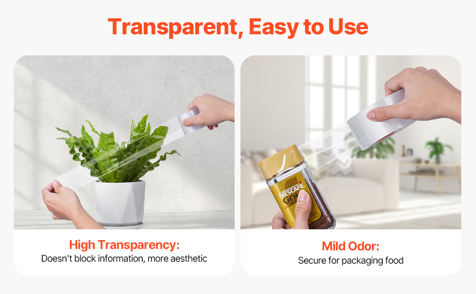 Easy to Use: Our heavy duty clear packing tape is compatible with standard dispensers or can be torn by hand, making packing quick and efficient. High transparency ensures clear labeling without blocking important information.